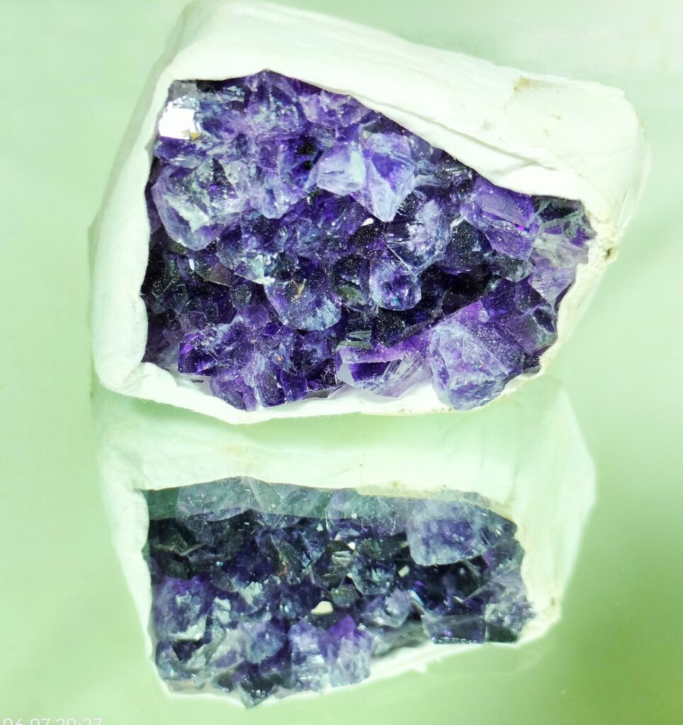 Amethyst is type of quartz which is violet to purple due to presence of iron and other trace metals. It is believed to protect against intoxication and drunkenness since ancient times. It is known to offer benefits for mental, emotional, and spiritual well-being, promoting peace, clarity, and spiritual growth.