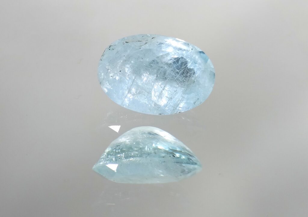 Aquamarine is a type of beryl with a pale-blue to light-green color and transparent to translucent prismatic hexagonal crystals. The color is due to presence of iron. Aquamarine can be found in Afghanistan, Pakistan, China, Kenya, Russia, USA, Brazil, Nigeria, Madagascar, Tanzania, Sri Lanka, India, and Australia. Due to its hardness of 7.5 to 8 on Mohs scale, it is suitable for use in jewelry. Aquamarine is known to promote inner peace, communication, decision-making, love and compassion. It is also associated with prosperity.