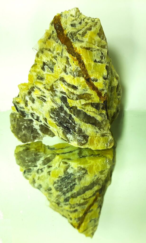 This beautiful stone is a shadowed mirror reflecting unity of opposites! Yellow Australian zebra jasper is a striped or banded sedimentary rock found in Western Australia. It is a siltstone, rather than calcedony and contains and iron oxide inclusions that impart color to the stone. The yellow or gold hues, sometimes with brown, mustard, or white banding are caused by different levels of heat exposure to iron inclusions during the formation. Due to it's good hardness of 6.5-7 on the Mohs scale it is used in jewelry and decorative items. It is believed to provide strong grounding energy, protection during travel, mental clarity, and balancing.