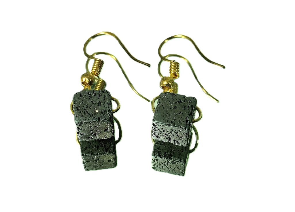 These ear tops resemble porous vessels of the spirit holding dreams of the Earth! The nature’s beautifully crafted spongy stones are durable and withstand extreme environments. The ability to slowly diffuse essential oils from the porous surface turn these jewelry items into natural diffusers for aromatherapy. Although simple in design, they add boldness to grace. Natural lava stones emit gentle, positive vibrations that resonate with the body’s energy field, enhancing the wearer’s aura and overall personality. Associated with the root chakra, lava promotes stability and balance. The grounding properties of lava strengthen one’s connection to Mother Earth. Application of a drop or two of an essential oil results in continuous diffusion of the perfume throughout the day, providing the benefits of aromatherapy.