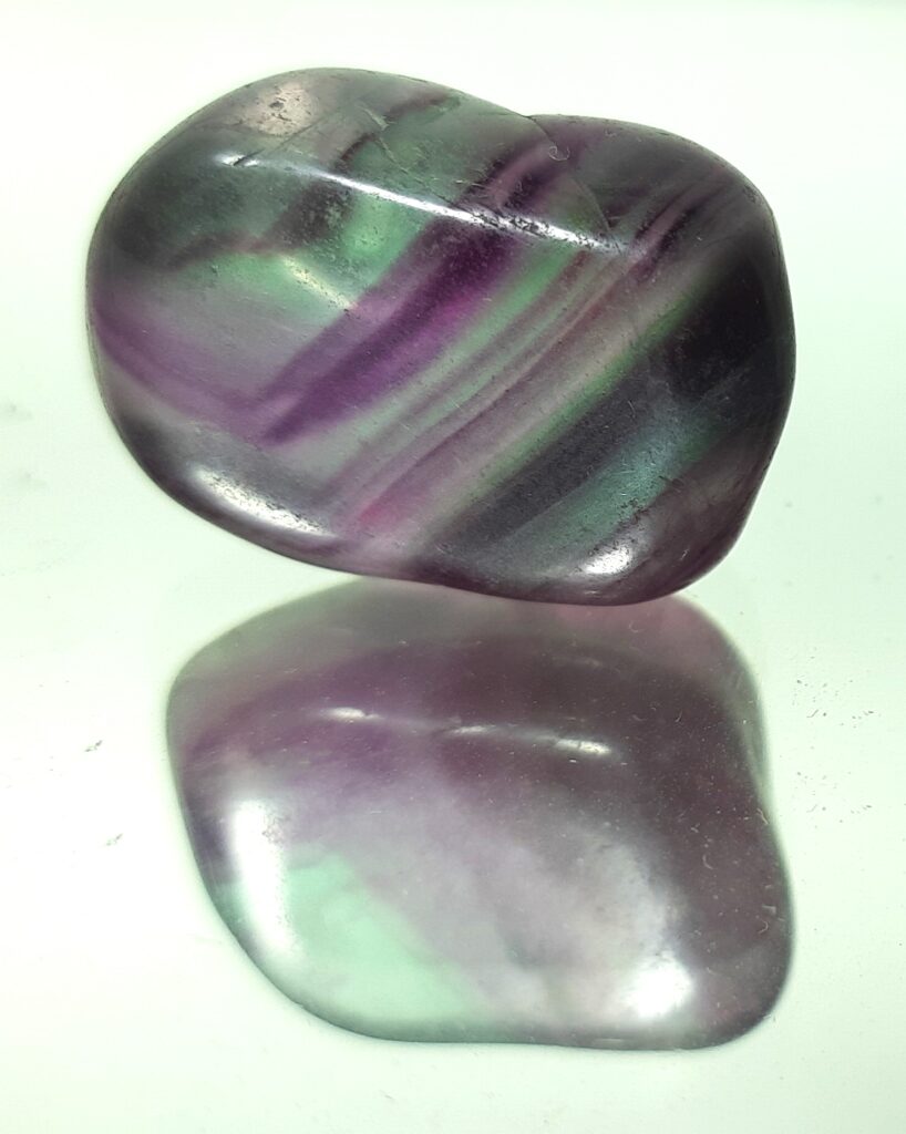 Multifluorite tumble stone displays beautiful green and violet-purple color zoning or banding. It is well-known for enhancing concentration and is ideal for students and professionals. Tumble stones can be carried in a wallet, purse or pocket. It be kept in the working space of the office or home to assist in decision making. Tumble stone can also be used in a key-chain or pendant. Purple color stimulates the third eye chakra, enhancing intuition and spiritual insight, while green color stimulates the heart chakra, promoting emotional healing and compassion. Multi-colored composition promotes balanced energy flow across all chakras for holistic well-being.