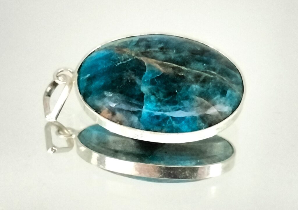 Blue apatite is a phosphate mineral of which hydroxyapatite is a constituent of teeth and bones of vertebrates. It is source of rare earth elements. It’s vibrant blue color is due to presence of rare earth elements, iron and manganese that replace calcium in the crystal structure. As a source of phosphate it is used as a fertilizer. Transparent and clear blue stones (moroxite) and green stones (asparagus stone) are used as gemstones. Rutilated apatite often show chatoyancy, i.e. cats-eye effect. Major sources for gem apatite are Russia, Brazil, Myanmar, and Mexico, while other sources include Canada, Czech Republic, Germany, India, Madagascar, Mozambique, Norway, South Africa, Spain, Sri Lanka, and the United States. Bl;ue apatite is believed to stimulate intellect to expand our knowledge and understand truth and remove confusion. It is known to offer motivation, ambition and self-confidence. Green Apatite is a calming and soothing stone that enhances communicative skills.