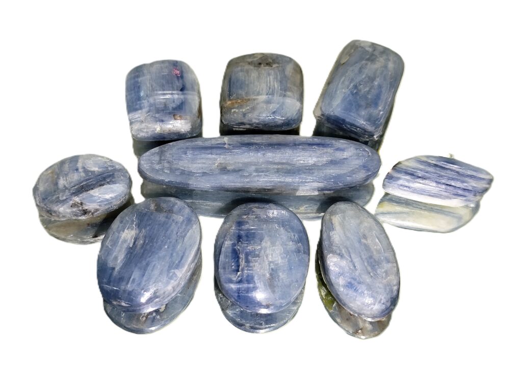 This jagged shard of serenity untangles the spirit and mirrors the stillness of a deep lake! The opaque and yet eye-catching blue kyanite cabochons display characteristic striated surfaces and parallel tubular crystals that may be broken at places. The blue pearly color is due to trace mineral impurities of iron. These cabochons can be used in rings, pendants and necklaces. Blue kyanite is associated with throat chakra and third eye chakra and is believed to aid in communication.