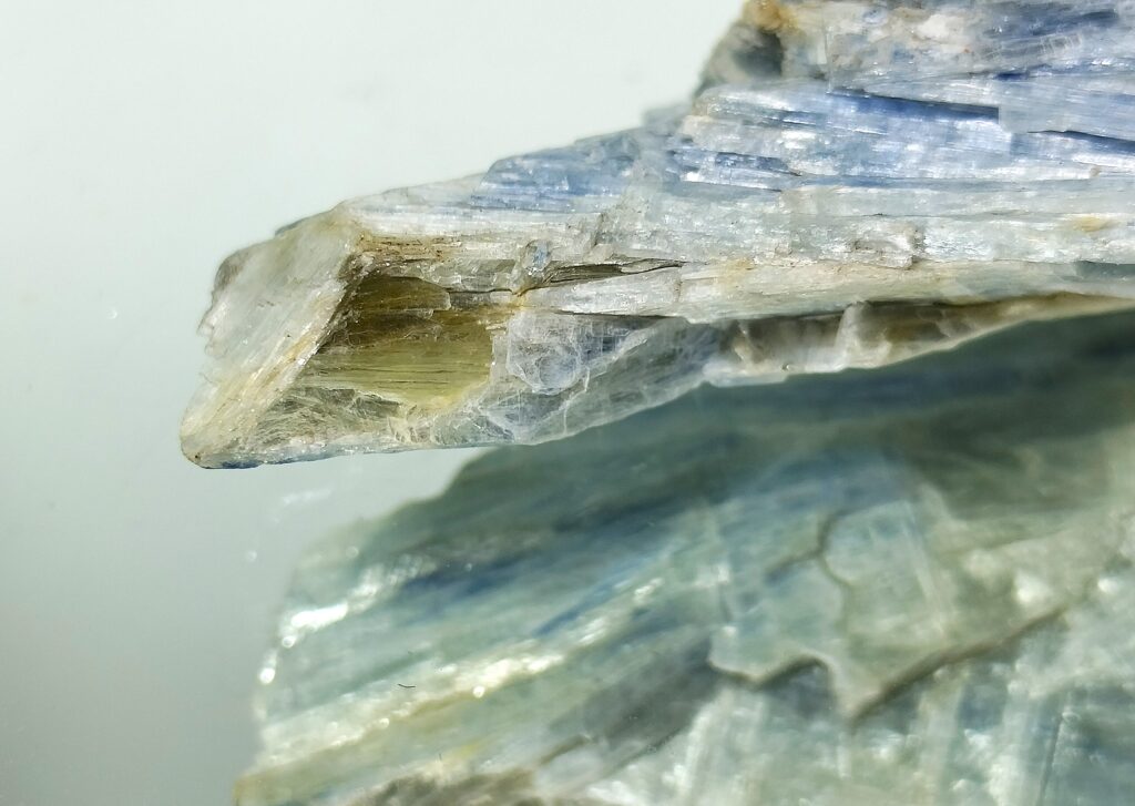 This raw stone is hiding the quiet heartbeat of the woods, crystallized into a teal-tinted spear! Is this by any chance a green kyanite sitting inside the blue host? It may well be due to traces of vanadium and chromium giving it a greenish appearance. According to the literature, green kyanite and blue kyanite can appear together in the same rock or even within a single crystal. Kyanite commonly exhibits color zoning, where different areas of the same crystal display various colors due to variations in trace elements present during its formation. Green kyanite is associated with heart chakra and is believed to aid in growth. This mix of blue and green kyanite may activate the heart chakra as well as throat chakra and third eye chakra to aid in communication.