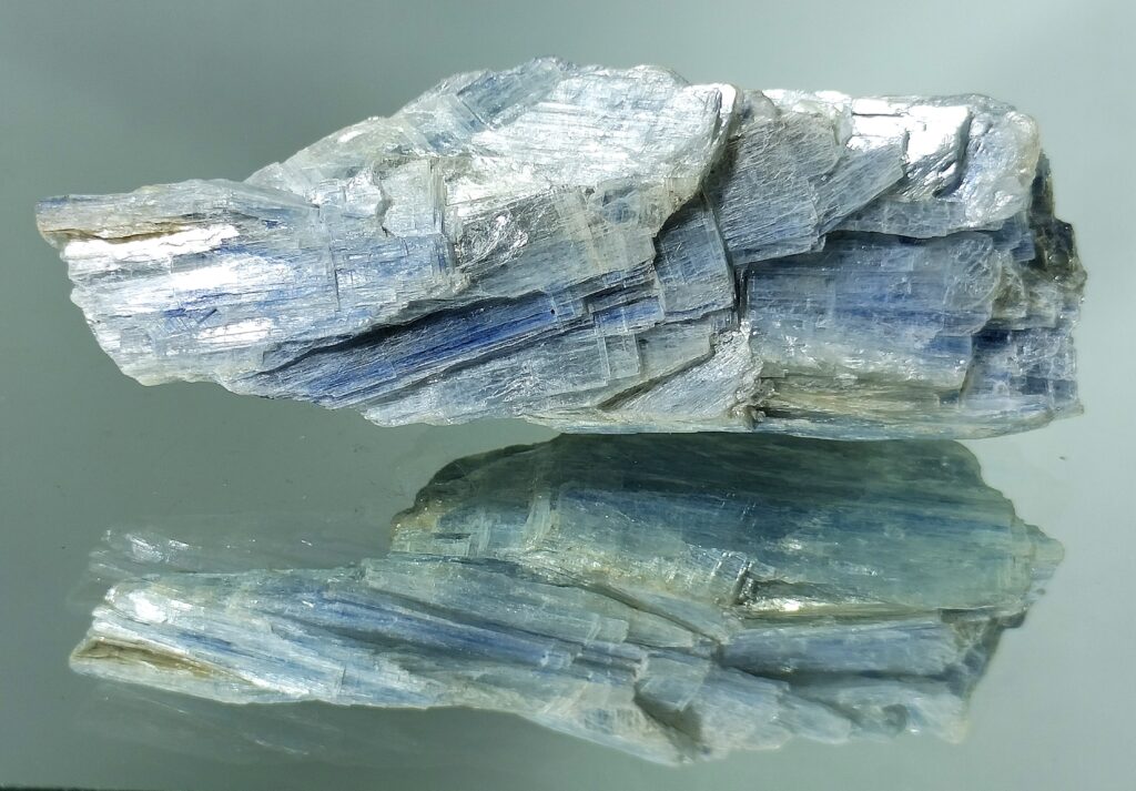 This raw Blue kyanite stone is reminiscent of a bladed shard of the fallen sky, forged to bridge the silent distance between the heart and the voice! The silicate mineral has flattened blades of pearly blue color, with the blue color imparted by impurities of iron and titanium. It is associated with throat chakra and third eye chakra and is believed to aid in communication. Raw stone can be kept in the office or home. Not only will it make an impactful display, but will also activate the chakras during meditation.