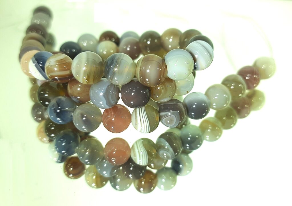 Botswana agate is a type of agate from Botswana, Africa with beautiful, fine bands of pink, brown and grey color. It is a variety of chalcedony and quartz and is called “Sunset Stone”. It is believed to offer emotional support, grounding, and aids in creativity and spiritual wellbeing.
