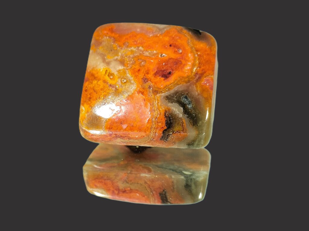 This striking cabochon displays lightning caught in a bottle of grey rock with distinct yellow, orange, and black swirling pattern. Although soft, it's visual appeal makes it a popular gemstone. Associated with the solar plexus chakra and sacral chakra, it is highly regarded for its energizing and uplifting properties. It aids in taking decisions, inspires new ideas, infuses joy.