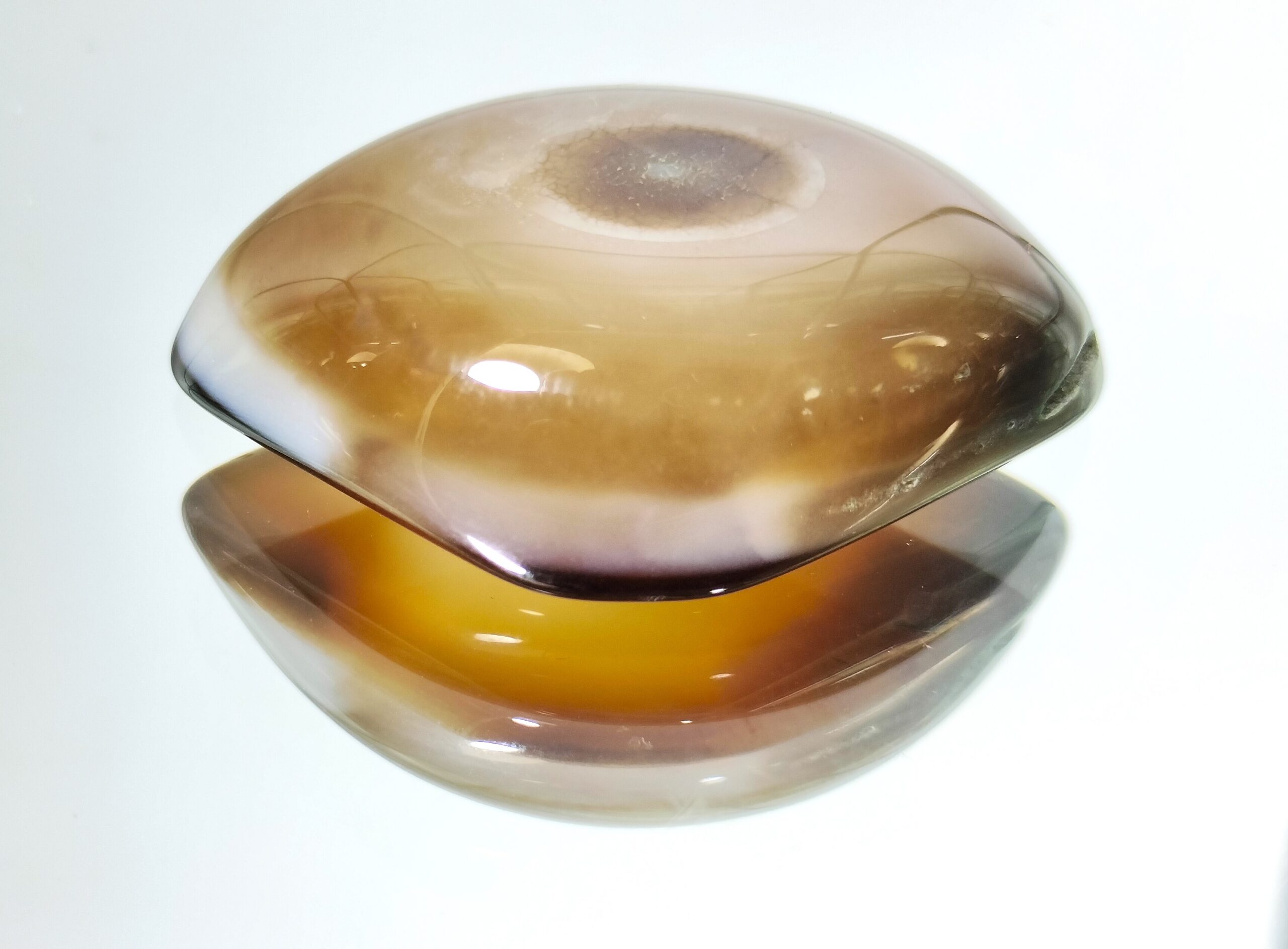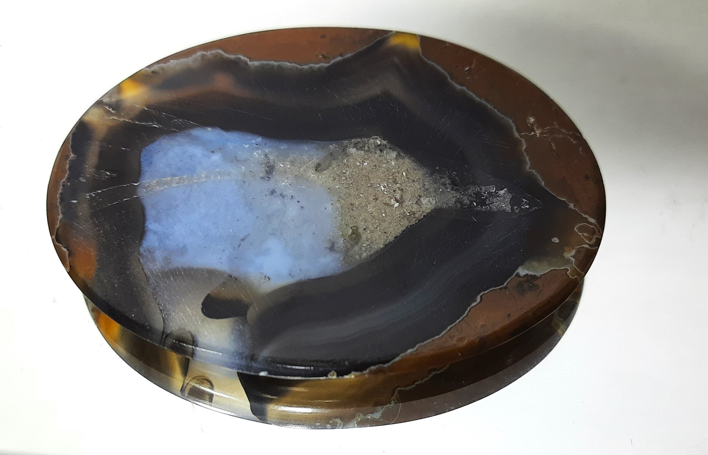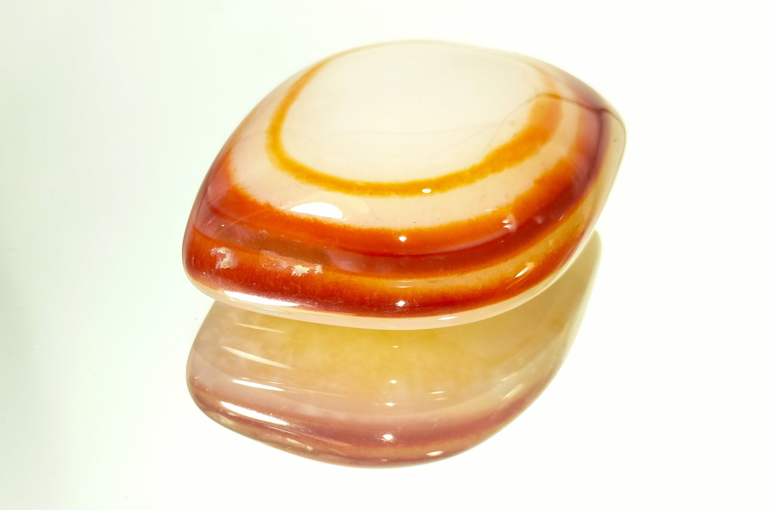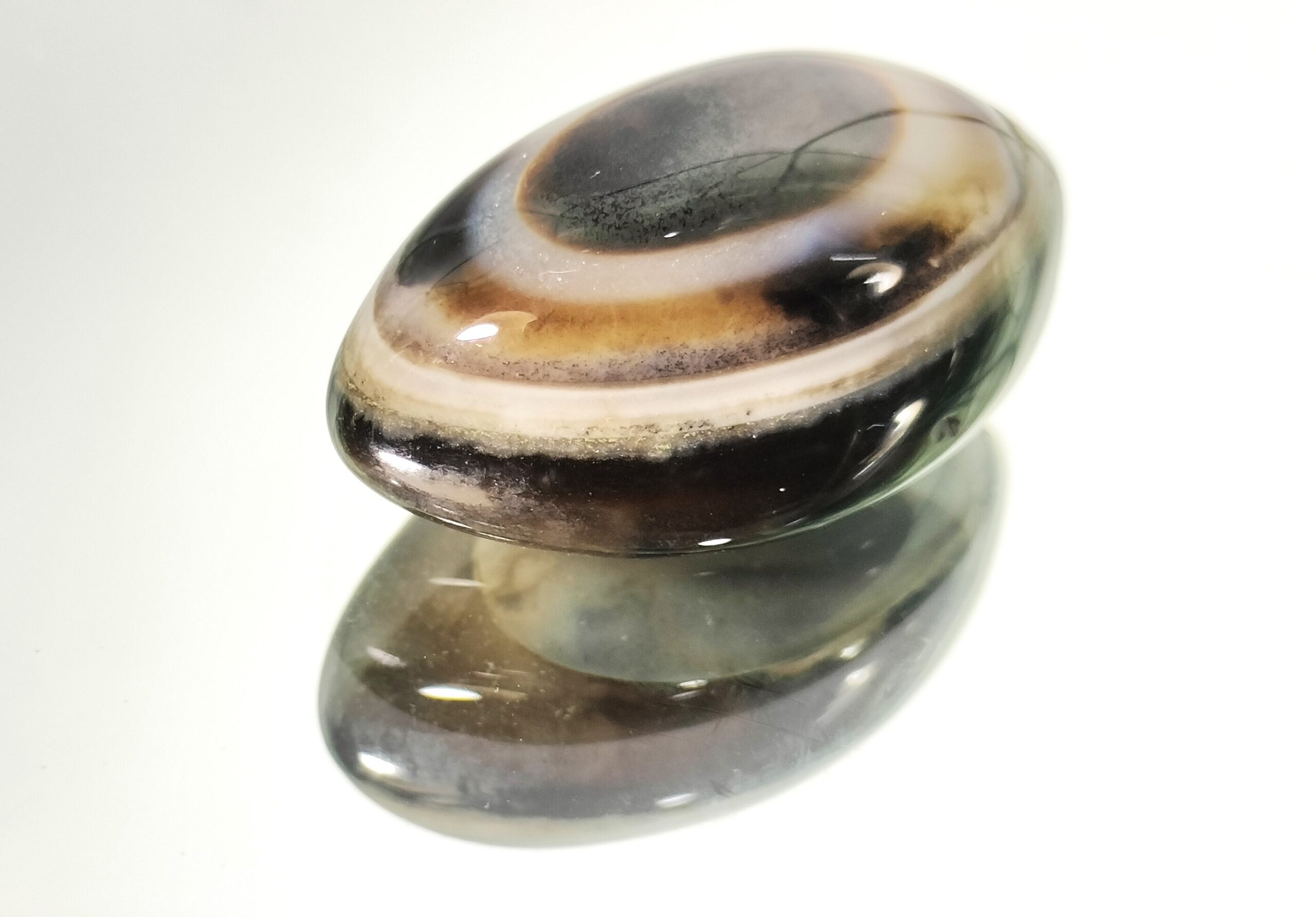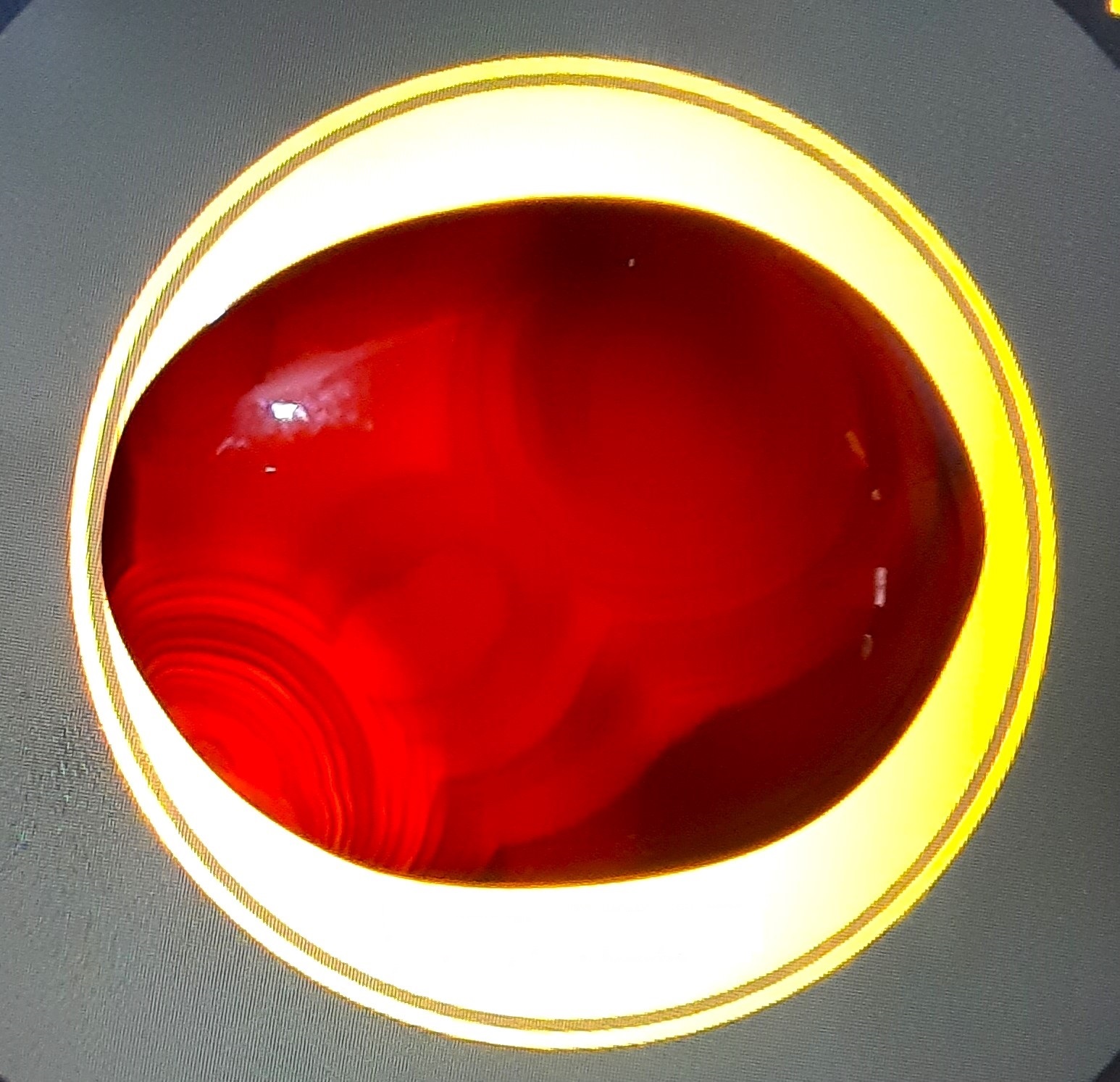 Yemeni Hakik (aqeeq, akik or aqiq) is a type of chalcedony stone with red, orange, brown or black hues resulting from the presence of iron oxides. Authentic natural hakik has a waxy to glassy luster and banding patterns of red, brown, and white color. It is a relatively hard stone that does not scratch easily with steel. Sometimes, specific “blood dots” or blood shots of hematite are evident within the stone’s matrix. A milky glow under light is used to identify Yemeni hakik. Yemeni hakik has religious importance in Islam and is associated with prophet Mohammed. It is also considered auspicious by the Hindus and other ancient cultures. It is well known for curing physical ailments and is believed to offer protection from negativity, stress and emotional imbalance. Yemeni hakik is believed to confer good fortune and prosperity.