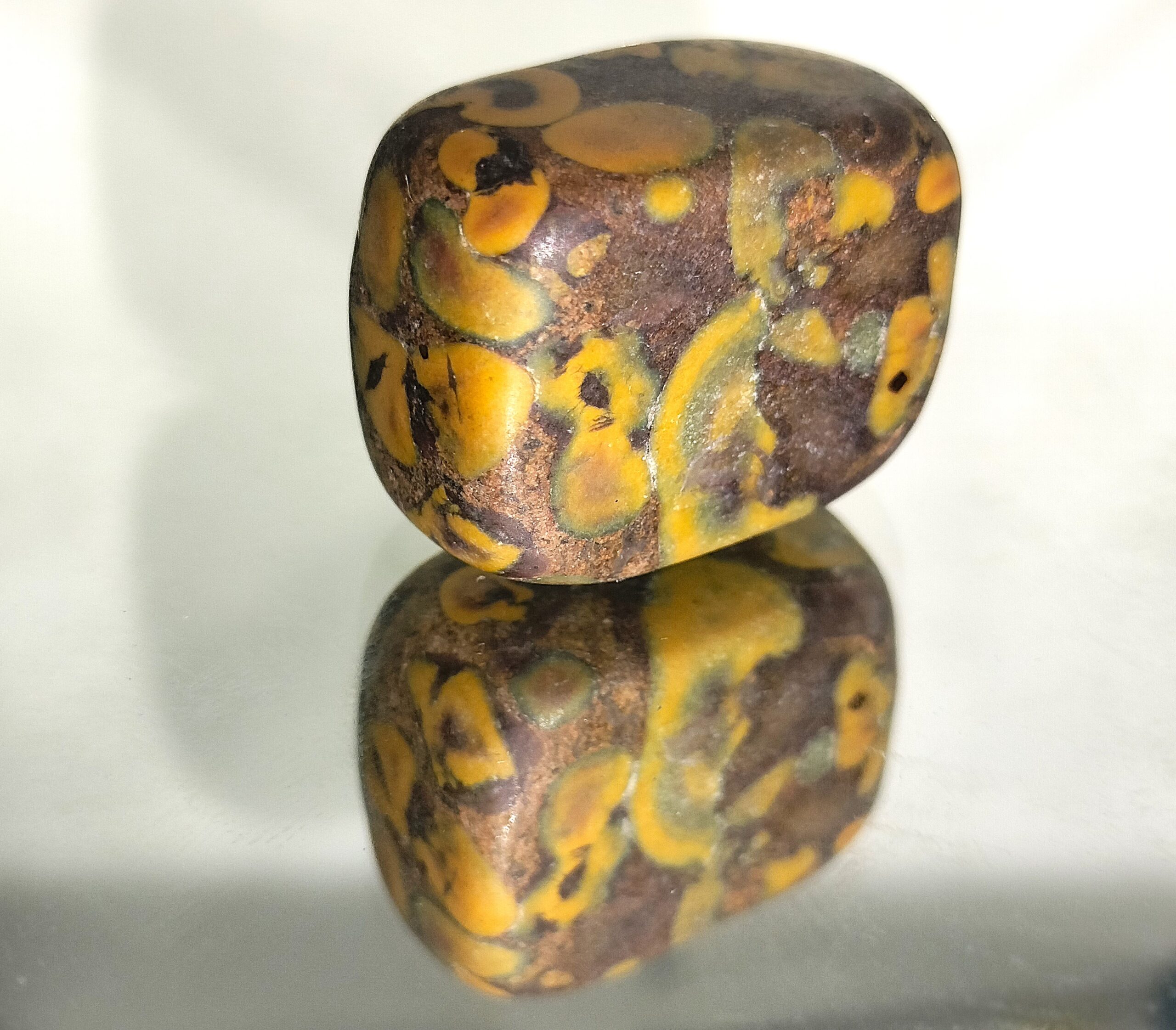 Like a slice of celestial fruitcake, each tumble stone of Ajooba jasper (fruit jasper) is a rich tapestry of organic patterns and hidden wonders. This little wonder or “ajooba” in Hindi, displays unique swirling patterns of green, yellow, and brown, red colors reminiscent of fruitcake or abstract artwork. Tumble stone can be carried along or it can be used for meditation. It can also be used in pendants and key-chains. Ajooba jasper offers supportive, nurturing energy to overcome fear and stress.
