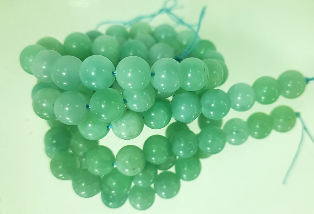 Aventurine, a type of quartzite is a translucent stone that displays characteristic metallic glitter called aventurescence (shimmering or glistening) due to mineral platelets (mica) oriented within the stone. The color varies from green to orange, brown, yellow, blue, or grey. Green and blue-green aventurine is found in India while other types are found in Chile, Spain and Russia. The stone is carved into beads and figurines, while fine quality material is carved into cabochons. Green aventurine brings about emotional healing, lets go of bad memories and promotes inner harmony. It also promotes love, compassion, and forgiveness, and thereby enhances relationships. Yellow aventurine is believed to boost confidence, creativity, and optimism. It is also known to promote prosperity and calmness.