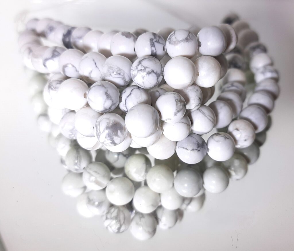 Howlite necklace is an elegant piece of jewelry pleasing to the eyes with its striking grey-black spider web pattern. As a “Stone of Serenity”, it promotes calmness and reduces stress. and anger. Wearing the howlite necklace is believed to activate the crown chakra promoting clear communication, enhanced memory and intuition.