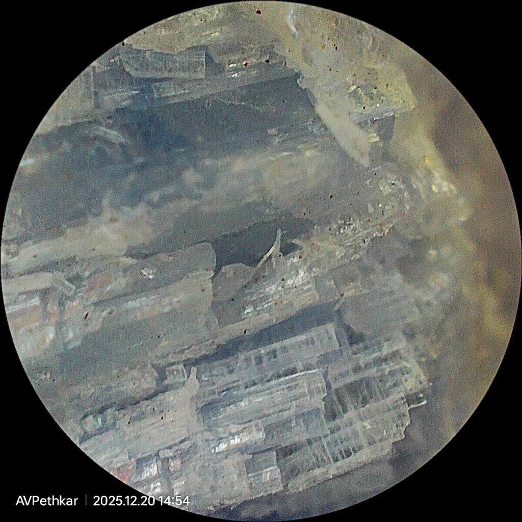 Microscopic examination of Kunzite reveals a fascinating internal world of long, slender, hollow tubes or "growth channels" that run parallel to the length of the crystal and can look like fine needles. It also shows occasional crystals of inclusions of other minerals as well as striations or deep vertical grooves on the crystal surface.