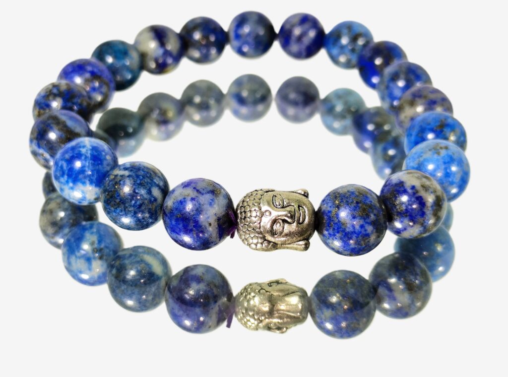 This bracelet is a sanctuary for the mind, painted in the colors of meditation and peace! The elegant 8mm beads bracelet showcases golden dust of pyrite embedded in blue-white matrix. Worn on the wrist, it proffers physical, emotional, and spiritual well-being. It is a useful for focusing intentions and defining missions and is a physical and concrete reminder of the personal goals. Lapis lazuli bracelet is a unique fashion accessory with an added benefit of creating awareness, chakra balancing and grounding. It is well known to improve mental clarity, concentration, and intellectual abilities, aiding in better focus and decision-making. The calming energy of this stone soothes stress, anxiety, and negative thoughts to promote a sense of serenity and inner peace. It encourages self-discovery and helps the wearer to be more aware of the inner truth, fostering honest and confident self-expression. As a “stone of wisdom and truth”, Lapis lazuli bracelet activates the throat chakra (communication) and the third eye chakra (intuition and insight) to promote intuition, spiritual growth, confidence and assertiveness.