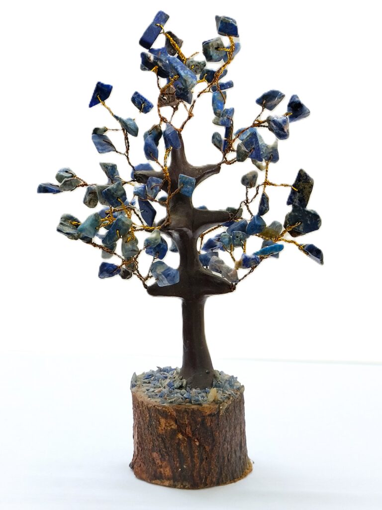 This beautiful tree is a silent sentinel of wisdom, rooted in the earth, blooming with the deep, velvet secrets of the heavens bringing enlightenment through a dusting of golden dust from forgotten stars! It is crafted from chips of the deep blue Lapis lazuli gemstone. This tree is believed to bring wisdom, truth, and spiritual insight, enhancing intuition, mental clarity, and self-expression while relieving stress and boosting the immune system. Placed in homes or workspaces for positive energy and prosperity, it serves as a grand decor for everyday inspiration.