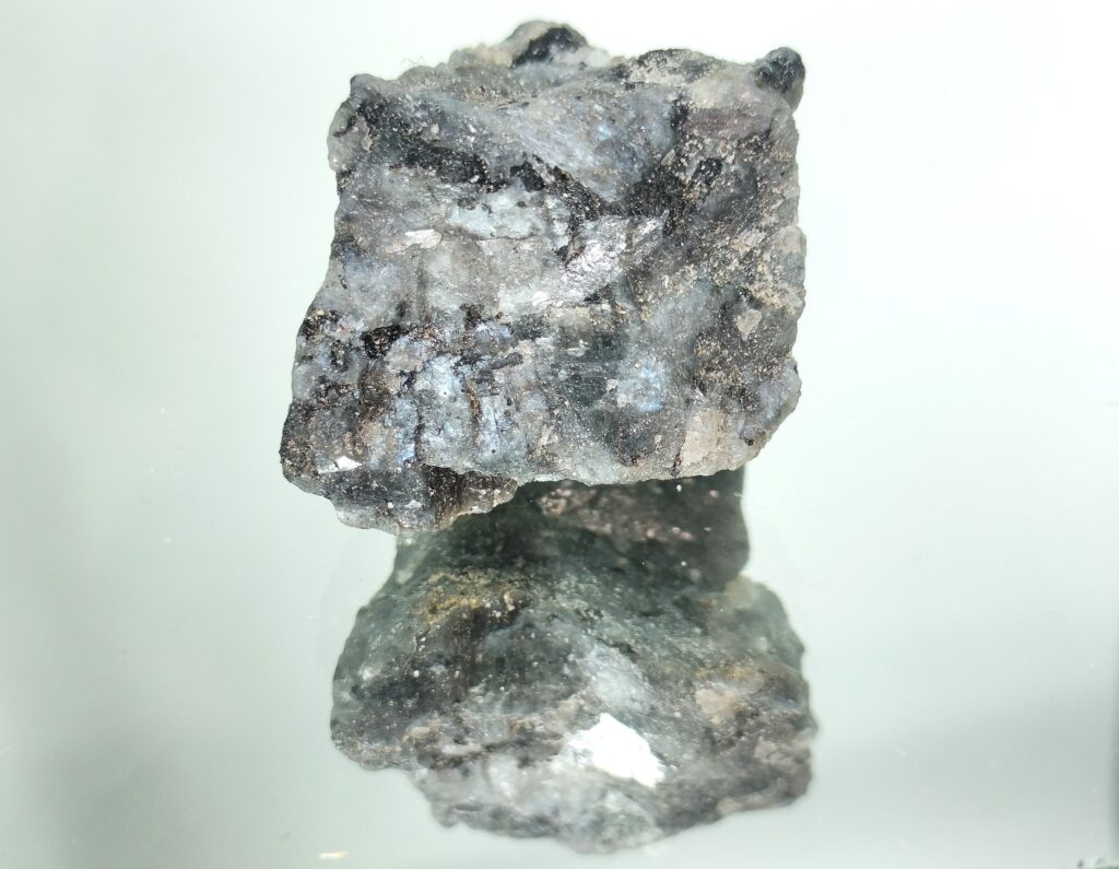 This raw piece of grey-black larvikite stone, is a rugged soul of the mountains dressed in a suit of shimmering silver armor. Also known commercially as Blue Pearl Granite, it flaunts natural silvery flashes from the grey-black feldspar crystals. It has been used since ancient times for high-polish architectural surfaces and wall coatings. This grounding stone is ideal for home display, pocket carrying, or jewelry making. It offers numerous metaphysical and spiritual benefits such as grounding energy, emotional stability and protection from negative energy.