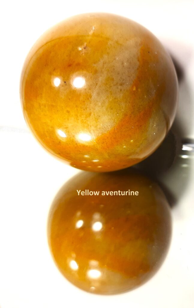Aventurine, a type of quartzite is a translucent stone that displays characteristic metallic glitter called aventurescence (shimmering or glistening) due to mineral platelets (mica) oriented within the stone. The color varies from green to orange, brown, yellow, blue, or grey. Green and blue-green aventurine is found in India while other types are found in Chile, Spain and Russia. The stone is carved into beads and figurines, while fine quality material is carved into cabochons. Green aventurine brings about emotional healing, lets go of bad memories and promotes inner harmony. It also promotes love, compassion, and forgiveness, and thereby enhances relationships. Yellow aventurine is believed to boost confidence, creativity, and optimism. It is also known to promote prosperity and calmness.
